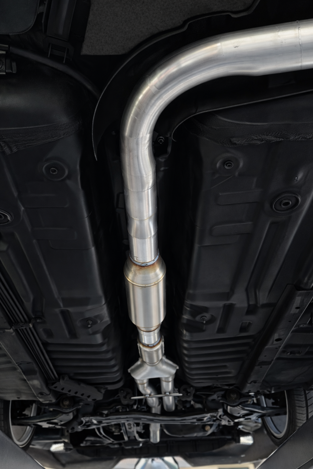 The system starts with a 2” header manifold outlet, transitioning smoothly into 2.5” mandrel-bent piping throughout the remainder of the exhaust. A properly engineered Y-pipe merge maintains exhaust velocity before feeding into a flex section to reduce stress and vibration. From there, exhaust gases flow through a resonator to control rasp and drone, then into a performance muffler tuned specifically for the MX-6 chassis.